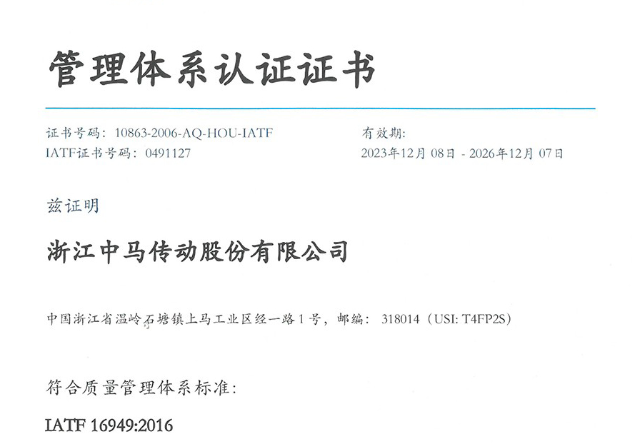 ZOMAX Group was founded in 1985. After nearly 40 years of development, it has now formed a development layout in the "Yangtze River Delta" region, with Shanghai as the window and Wenling City in Zhejiang Province and Yancheng City in Jiangsu Province as the two wings. The group focuses on capital operation, investment and financing, and the cultivation of emerging industries. Its investment landscape covers industries such as automotive transmissions, new energy vehicle charging products, new energy vehicle reducers, automobiles, motorcycles, garden machinery, intelligent CNC machines, hydraulic components, new construction materials, and real estate. Among them, Zhejiang Zhongma Transmission Co., Ltd. (603767) is listed on the main board of the Shanghai Stock Exchange, and Zhejiang Zhongma Garden Machinery Co., Ltd. (831769) is listed on the "New Third Board". Qingdao Hardhitter Electric Co., Ltd. is one of the first gazelle enterprises in Shandong Province and a national-level "specialized, refined, characteristic and new" little giant enterprise; Wenling Dazhong Precision Machinery Co., Ltd. is the main drafter of national industry standards and a national-level "specialized, refined, characteristic and new" little giant enterprise.