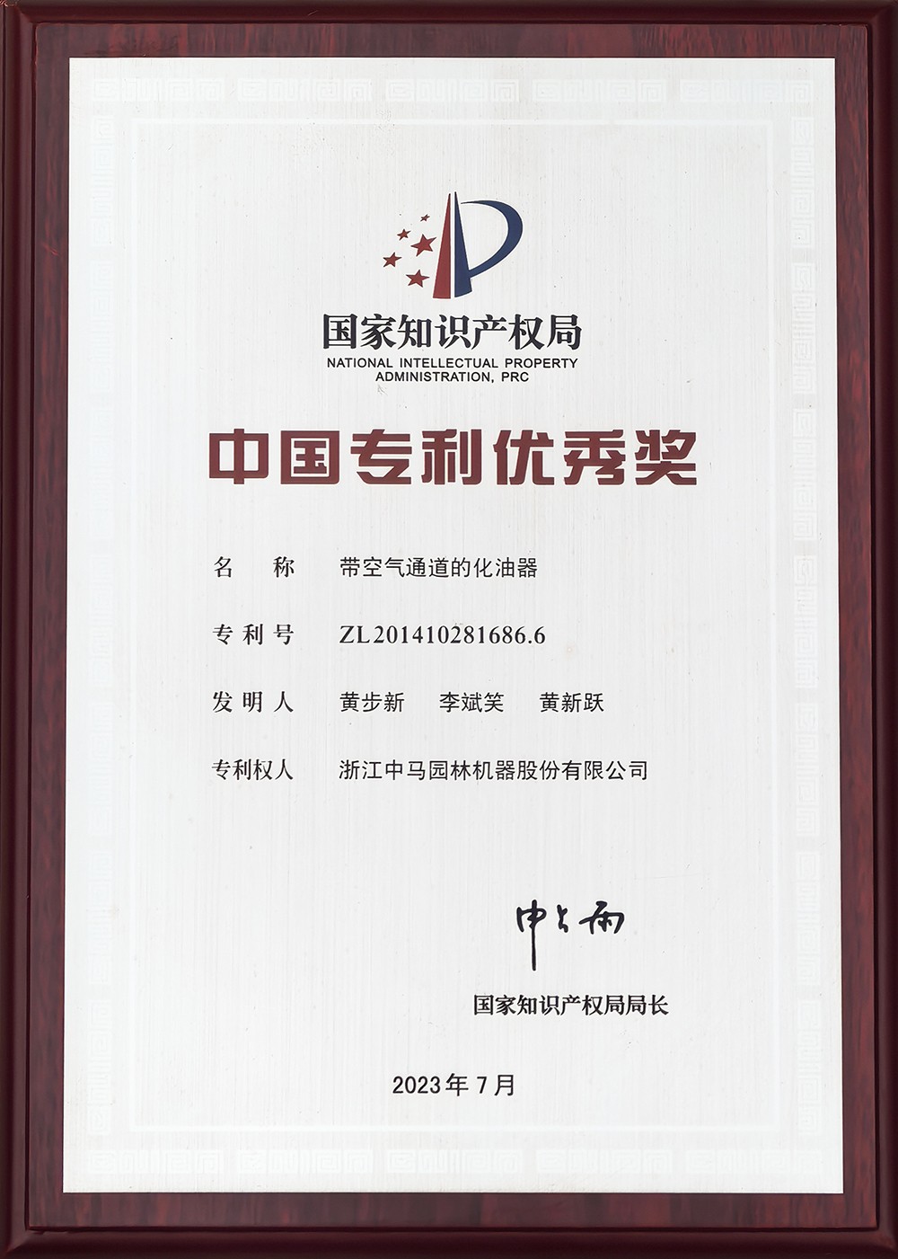 中國專利優(yōu)秀獎